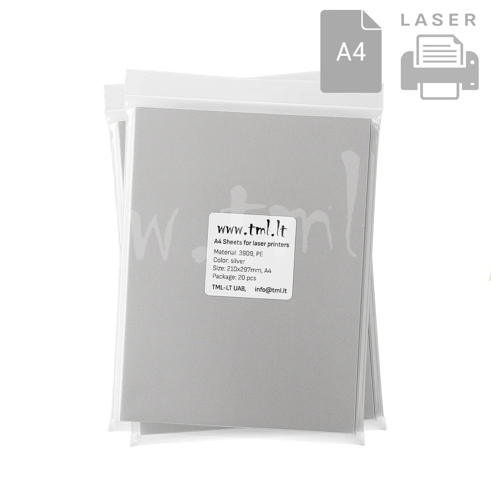 Silver glossy labels A4 (210х297mm), polyester (PE) 3909 for laser printers, 20 pcs/pack