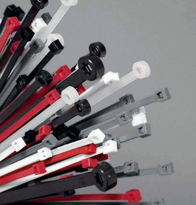 The only cable ties with stainless steel double lock in the world and reinforced cable ties with a double flat lock for heavy duty use. Vibration resistant ties. Frost-resistant (-60°C) and all-weather UV-resistant ties with at least 10-year service life outside. Cable ties for mounting in frost up to -40°C. Cable ties with marking area.