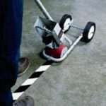 Podczas nakładania długich prostych linii znakowania (z wyjątkiem krzywizn o ostrych zagięciach) zaleca się użycie aplikatora do znakowania podłóg. Aby uzyskać zakrzywione linie, taśmę należy nakładać powoli po zewnętrznej stronie linii referencyjnej (Ryc. 1).