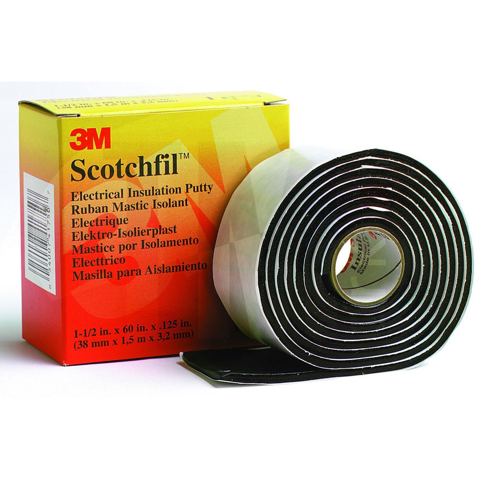 Scotchfil Electrical insulation putty is a 3.175mm thick electrical grade compound in tape form. It can be wrapped, stretched or molded around irregular shapes for quick, smooth insulation build-up. It is UL Recognised as a joint insulation for electrical conductors at temperatures up to 80°C (176°F) when over wrapped with either Super 33+ or Super 88 Vinyl Electrical Tape. Scotchfil™ electrical putty can also be used to build up cable joints and fill out major irregularities and voids.