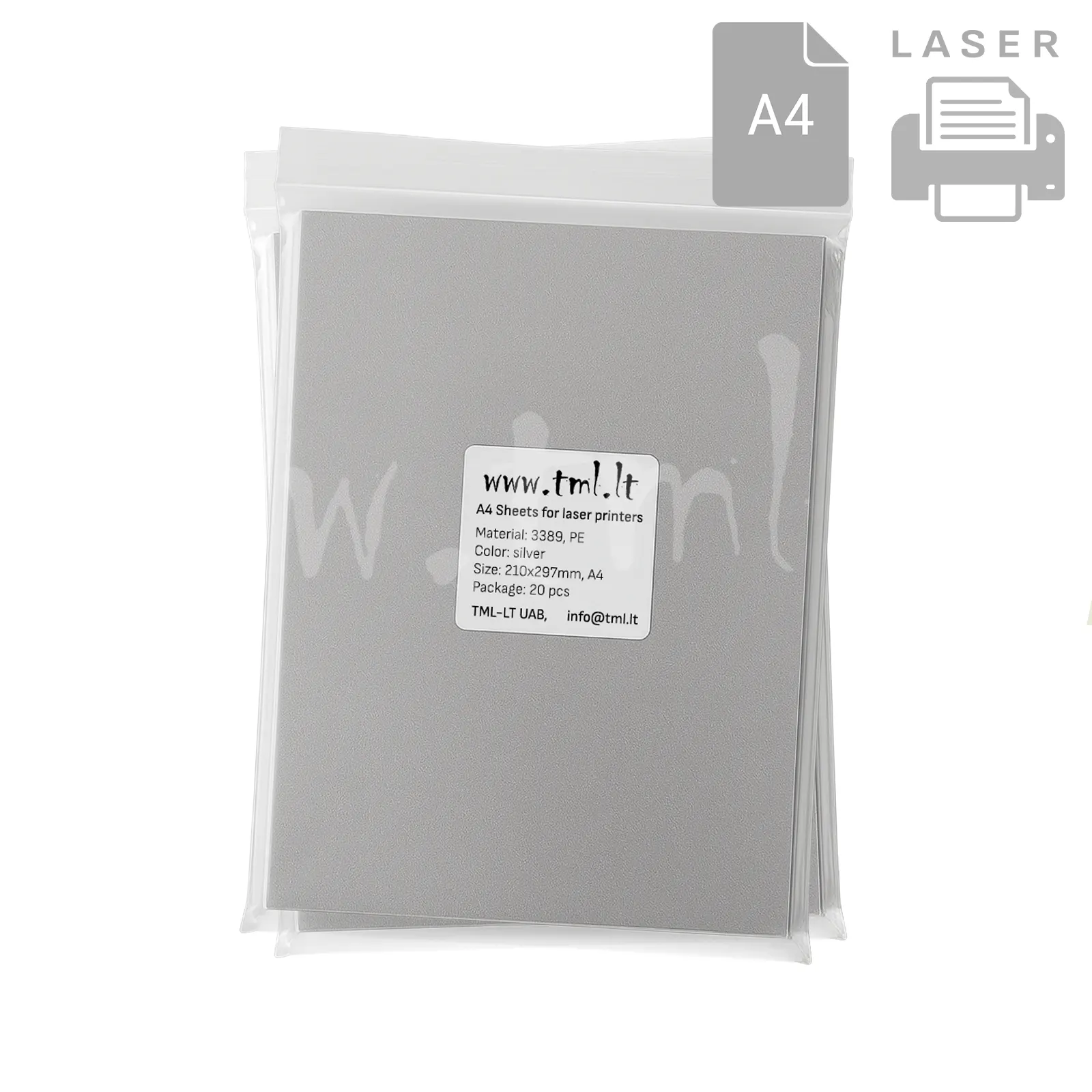 Этикетки на листах А4 для лазерной печати из серебристого матового полиэстера 3389. Упаковка содержит 20 листов.